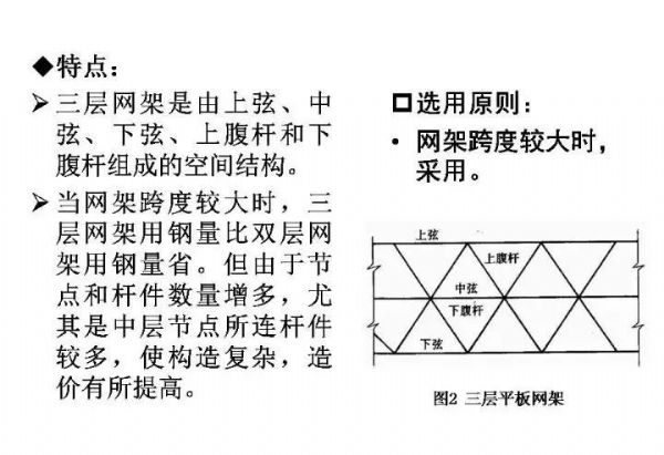 本文主要講述了網(wǎng)架結(jié)構(gòu)的形式、設(shè)計(jì)選型、支承體系以及網(wǎng)架的找坡方法,并進(jìn)行了常用網(wǎng)架設(shè)計(jì)軟件的比較,對(duì)空間鋼結(jié)構(gòu)尤其是網(wǎng)架網(wǎng)殼結(jié)構(gòu)感興趣的朋友不妨一讀。
